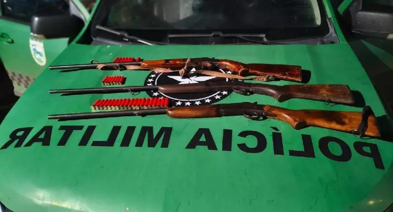A Polícia Militar de Rondônia apreendeu três espingardas e prendeu três homens por posse ilegal de arma de fogo durante uma operação realizada na zona rural de Seringueiras. A ação ocorreu na BR-429 e faz parte da Operação Protetor das Divisas e Fronteiras. De acordo com o boletim de ocorrência, a equipe do Batalhã