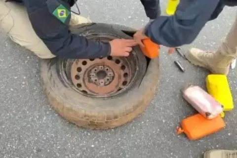 No interior do veículo, foram encontrados compartimentos ocultos na lateral do porta-malas, encoberto por forros, e dentro do estepe. Dentro deles, estavam diversos tabletes de pasta base de cocaína.